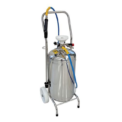 エアー配管やコンプレッサーと接続することで、きめ細かいムース状の泡を効率良く広範囲に散布することができる発泡洗浄機です。