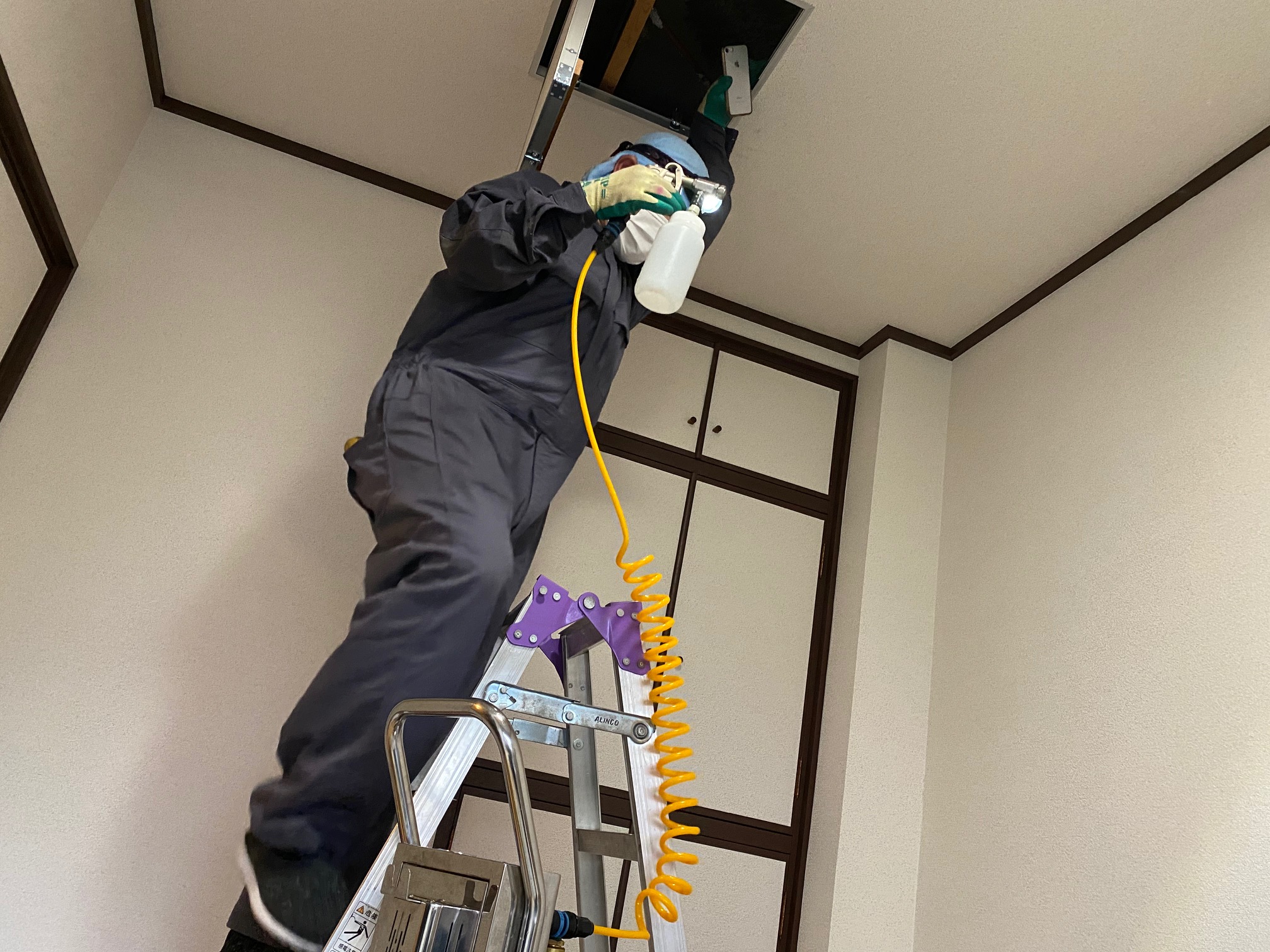 まずは掃除と殺菌消臭施工を行いました。
