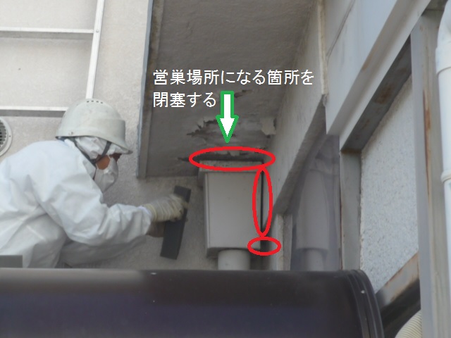 出入りしていない隙間箇所を先に閉塞します。