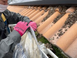 隙間に入り込んだ糞や巣を掻き出し、高圧水で洗い流すのは、熟練の技術が必要です。